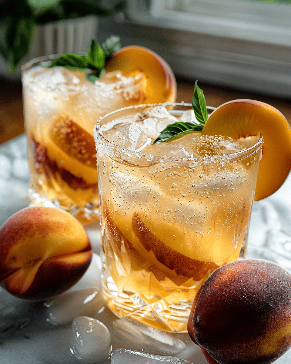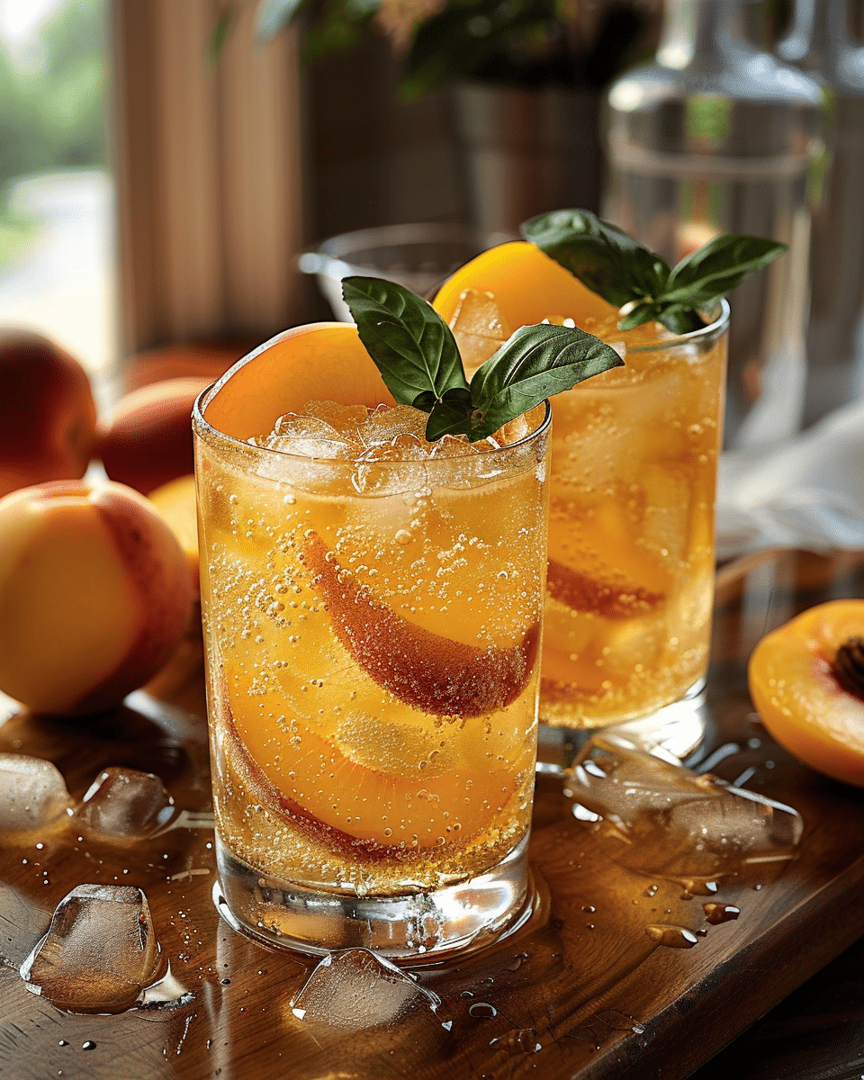 A bubbly summer drink made with real peaches, ginger, and club soda—perfectly light and refreshing for hot days and garden parties.