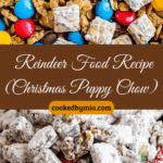 Reindeer Food is a festive twist on traditional puppy chow, typically made with seasonal candies like red and green M&Ms and peanut butter cups to make it more Christmas-themed.