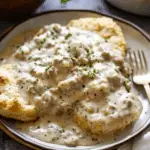 I like this recipe because it’s incredibly satisfying without being complicated. The gravy is rich and savory with hints of thyme, rosemary, and red pepper flakes that add depth without overpowering the dish. The biscuits soak up the creamy sauce perfectly, making every bite delicious. Whether I’m cooking for a crowd or just want something special on a weekend morning, this one never fails.