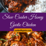 This slow cooker honey garlic chicken is sweet, savory, and fall-apart tender. A simple crockpot dinner made with juicy chicken thighs and an easy homemade sauce.