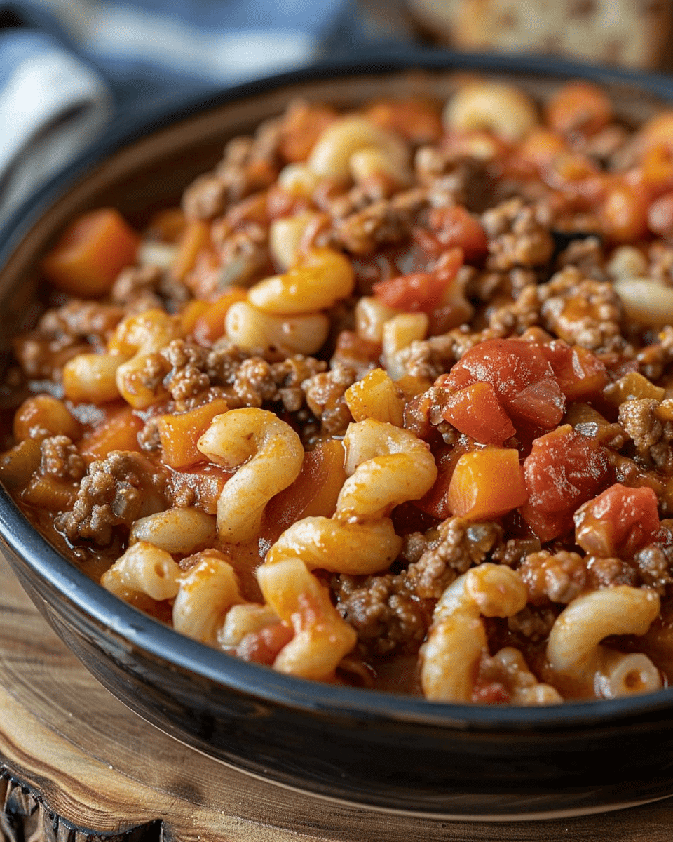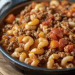 This classic one-pot goulash blends ground beef, tomatoes, and tender elbow macaroni into a warm, comforting meal—just like Nana used to make. Perfect for weeknight dinners.