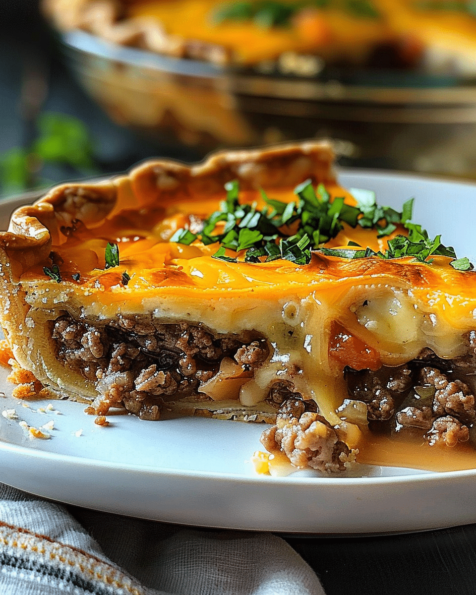 Let rest for 5 minutes before slicing. Serve warm for that delicious cheeseburger-in-a-pie experience!