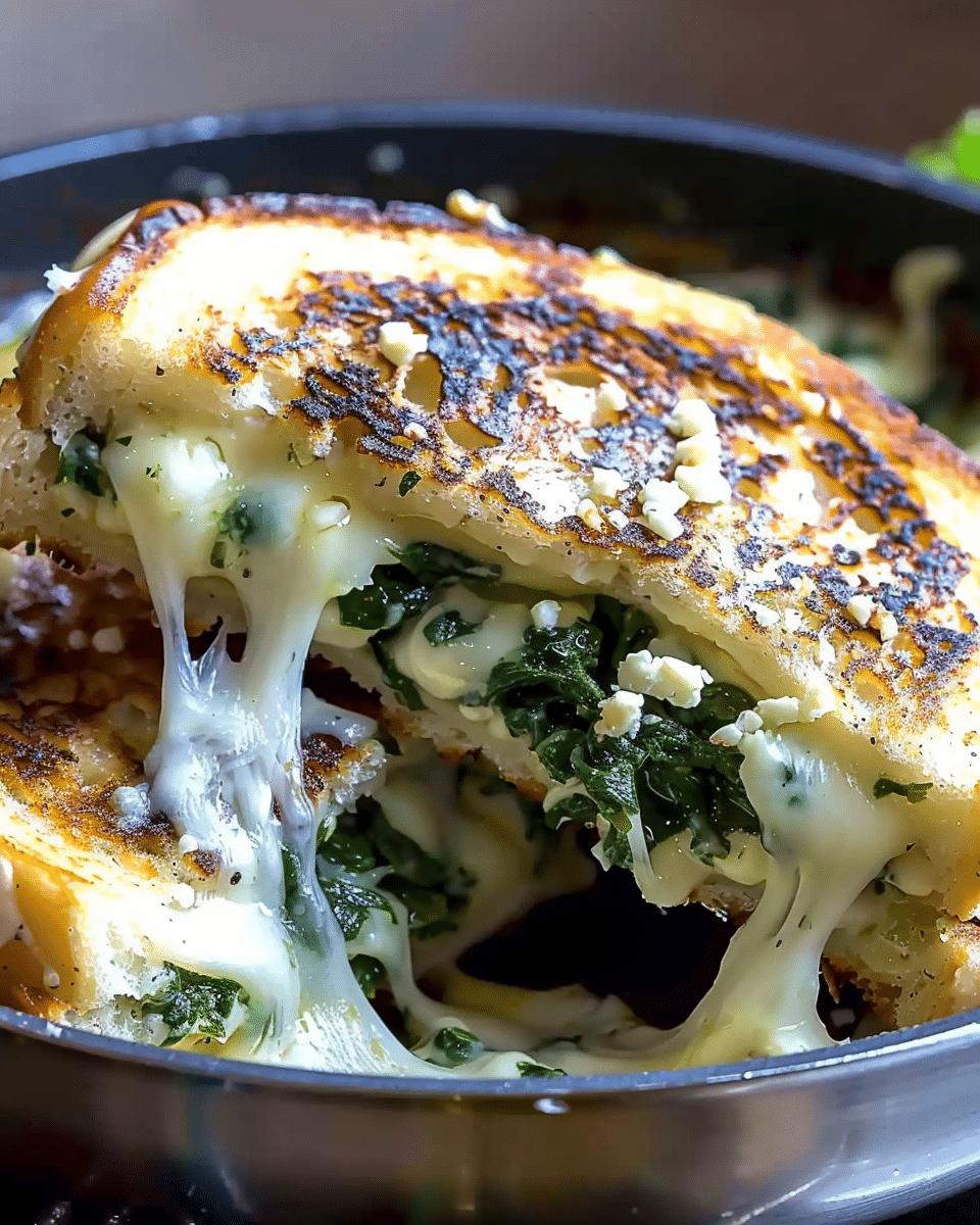 I make sure to sauté the spinach thoroughly to remove excess moisture, and I always grill the sandwich until golden brown to lock in the crispness.