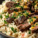 Steak and Queso Rice is one of those meals that feels like comfort food but still packs bold, fresh flavors. I love how customizable it is, and the creamy queso ties everything together in the most delicious way. Whether it’s for a cozy dinner or casual gathering, this dish is a definite crowd-pleaser in my kitchen.