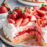 A dreamy strawberry cake soaked with creamy cheesecake pudding and topped with whipped cream and fresh strawberries. Light, luscious, and no-fuss—perfect for any occasion!
