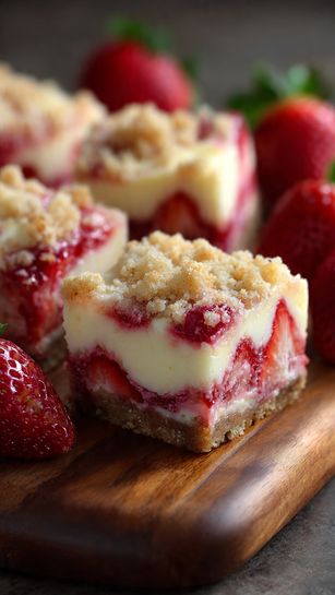 I love how these cheesecake chunks turn a classic flavor into a fun, shareable dessert. The smooth cheesecake filling is balanced by a bright strawberry sauce and topped with a crunchy, nostalgic layer of strawberry crumble. Add a drizzle of white chocolate, and every bite becomes a celebration of texture and flavor. Plus, they’re easier to serve than a traditional cheesecake—no forks required.