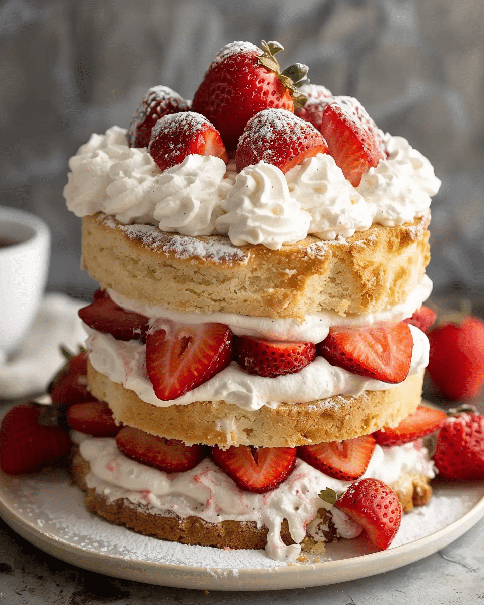 A nostalgic summer dessert with buttery biscuits, juicy strawberries, and whipped cream—perfect for picnics, brunch, or any sweet craving.