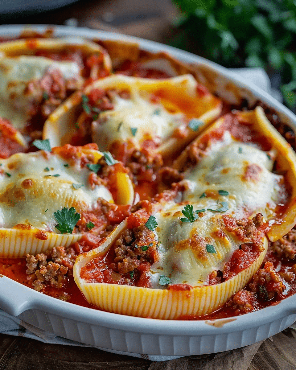 I love how this dish combines the best of both worlds—savory, meaty flavor and creamy, cheesy filling. The blend of sausage and beef gives the sauce depth, while the ricotta filling adds a smooth, mild contrast. I also enjoy that it can be made ahead, refrigerated, or even frozen for a quick dinner later. When baked, the shells become tender and the cheese melts beautifully, creating that golden, bubbly top I can never resist.
