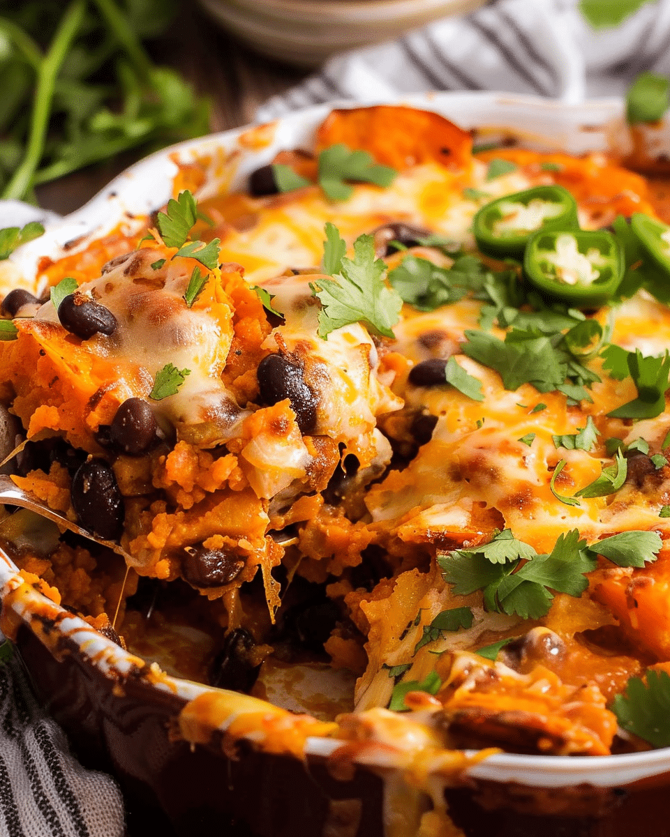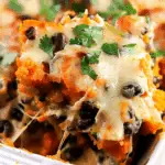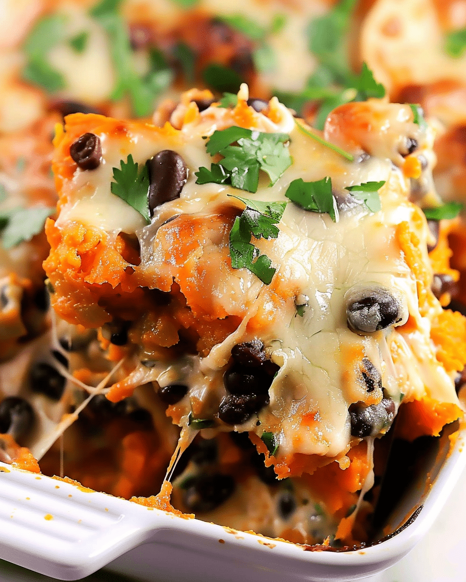This high-protein vegetarian sweet potato black bean casserole is packed with flavor, easy to layer, and baked to cheesy perfection for a satisfying meal.