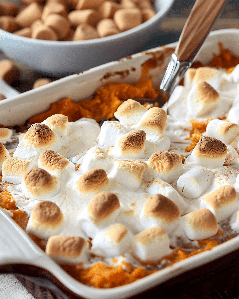 I love how comforting and nostalgic this casserole feels. The sweet potatoes are soft and buttery with just the right hint of cinnamon and vanilla, while the topping adds a delightful crunch. And those gooey, golden marshmallows on top? Irresistible. It’s the kind of dish that brings everyone back for seconds and turns a simple side into a standout favorite.
