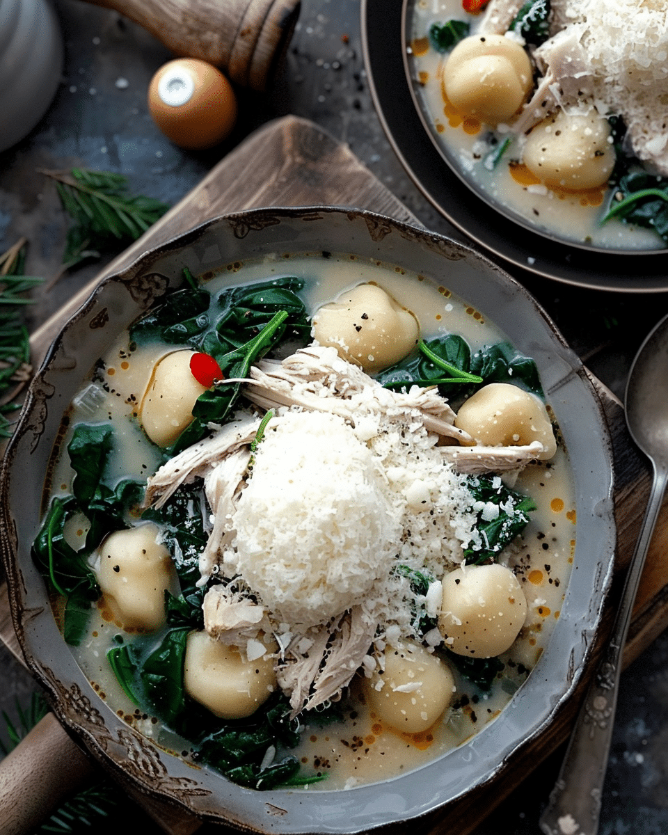 I store leftovers in an airtight container in the fridge for up to 3 days. When reheating, I warm it gently on the stovetop over medium-low heat. If the soup has thickened, I add a splash of broth or cream to loosen it up. I avoid boiling it during reheating so the cream doesn’t break. The gnocchi may absorb more liquid overnight, but I actually love the thicker texture it gets the next day.