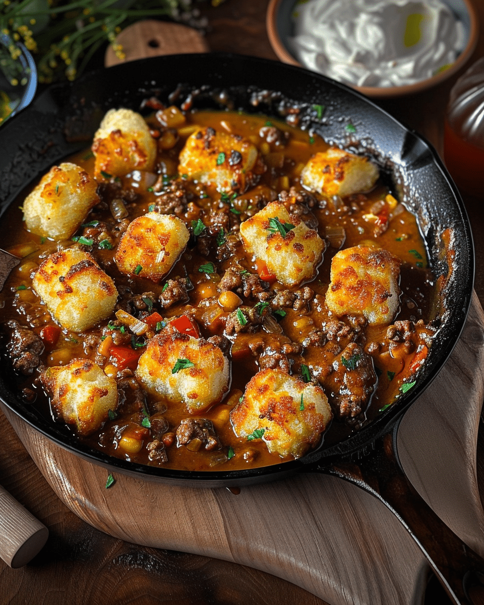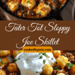 This tater tot sloppy joe skillet is the ultimate comfort food—savory beef, crispy tots, and melted cheddar in one hearty, oven-finished dish. Perfect for weeknight dinners or game day.
