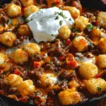 I like changing things up with this skillet by swapping the beef for ground turkey or even plant-based crumbles. Sometimes I add chopped bell peppers or jalapeños for extra flavor, or stir in a handful of frozen corn or black beans for a Southwestern twist. If I’m feeling indulgent, I mix some extra cheese into the beef layer before topping it all with the tots.