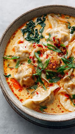 This Thai coconut curry dumpling soup recipe is creamy, comforting, and full of bold flavors. With soft, fluffy dumplings and a fragrant coconut curry broth, it’s the perfect cozy soup for any day.