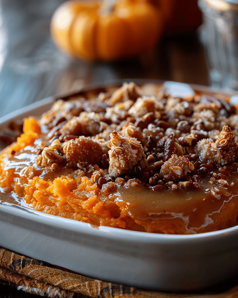 This recipe yields 8 servings and takes about 55 minutes total—25 minutes to prep and 30 minutes to bake. It’s perfect for Thanksgiving or any festive meal that needs a comforting, sweet-savory side dish.