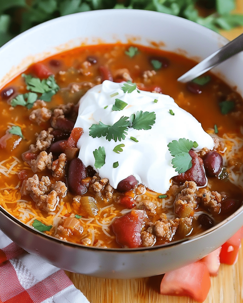 Classic hearty chili recipe made with ground beef, beans, tomatoes, and bold spices. This Pioneer Woman Chili is perfect for cozy dinners, game day, or meal prep.