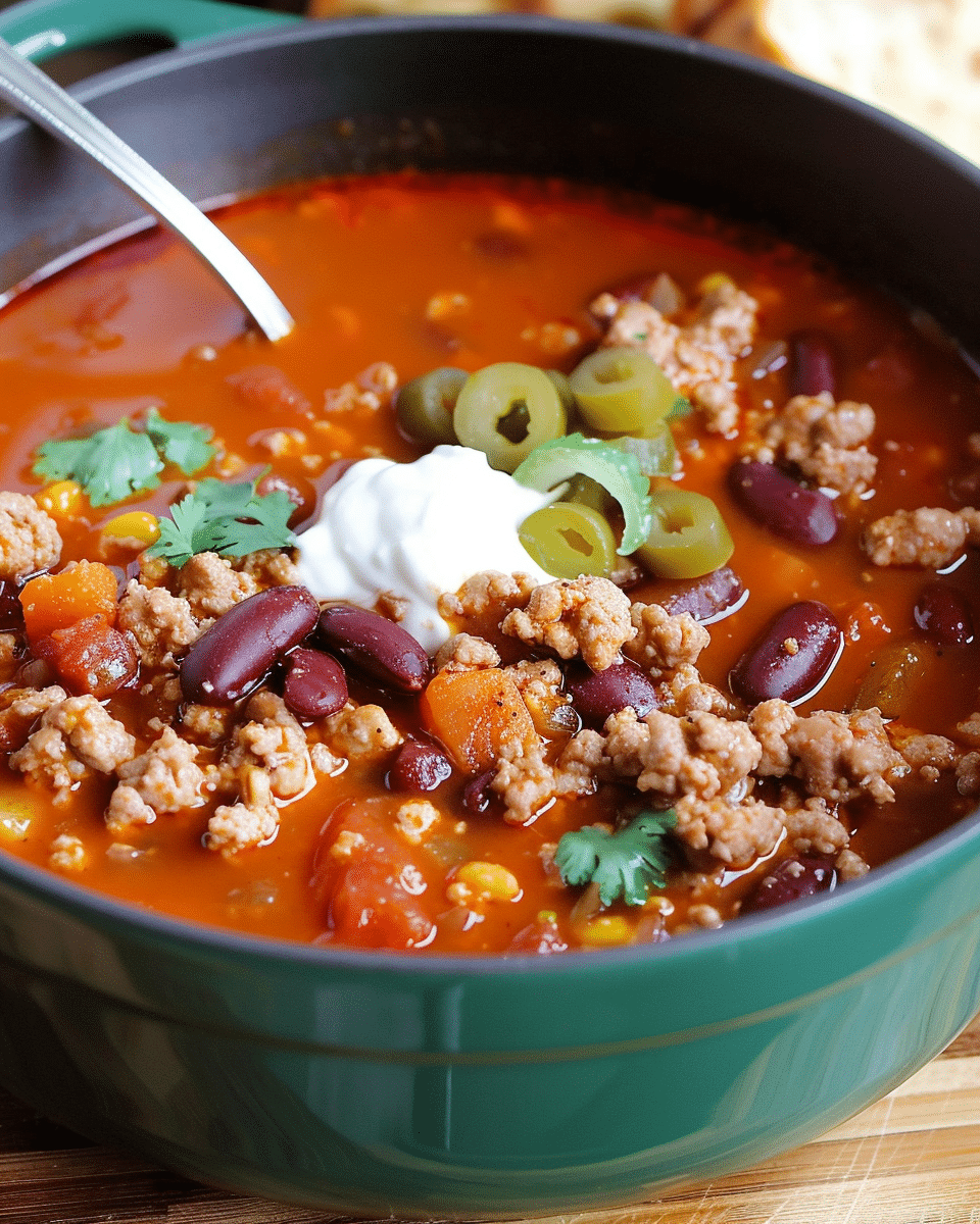 I store leftover chili in an airtight container in the refrigerator for up to 4 days. When I’m ready to reheat it, I just warm it on the stovetop over medium heat until hot, stirring occasionally. It also freezes beautifully—I portion it into freezer-safe containers and thaw it overnight in the fridge before reheating.