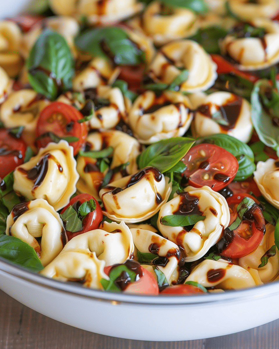 This quick and easy Tortellini Caprese Salad combines cheesy tortellini, juicy tomatoes, mozzarella pearls, and basil with a balsamic glaze—perfect for summer and beyond!