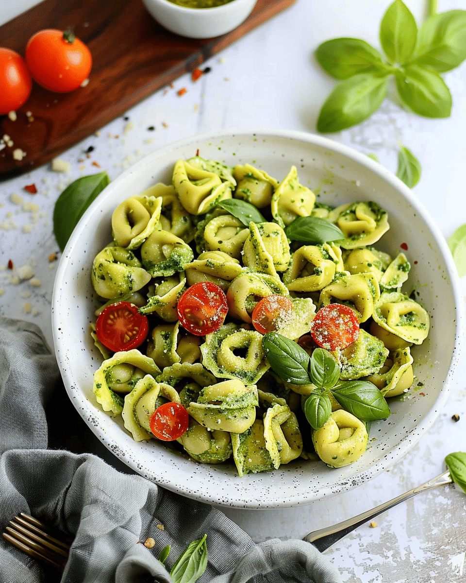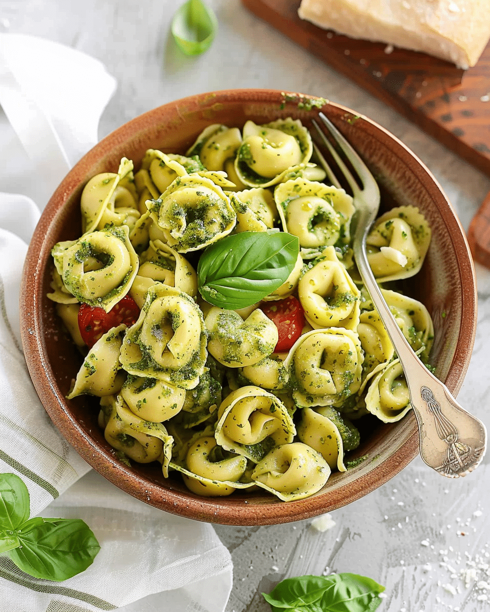 Mix Base: In a large serving bowl, combine the cooked tortellini and pesto. Stir gently until the pasta is evenly coated.