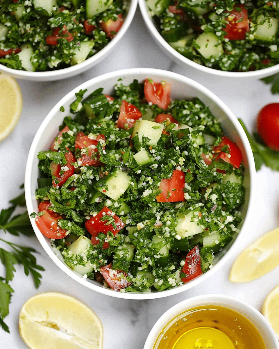 A fresh and vibrant herb salad made with parsley, mint, lemon, and fine bulgur wheat. This authentic tabbouleh recipe is light, zesty, and perfect with grilled meats or pita.