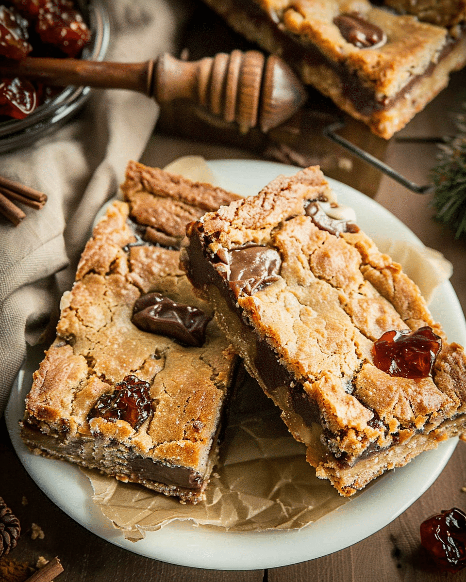 I bake the bars for 30–35 minutes until the edges are lightly golden and a toothpick inserted in the center comes out mostly clean (a little caramel on the toothpick is fine).