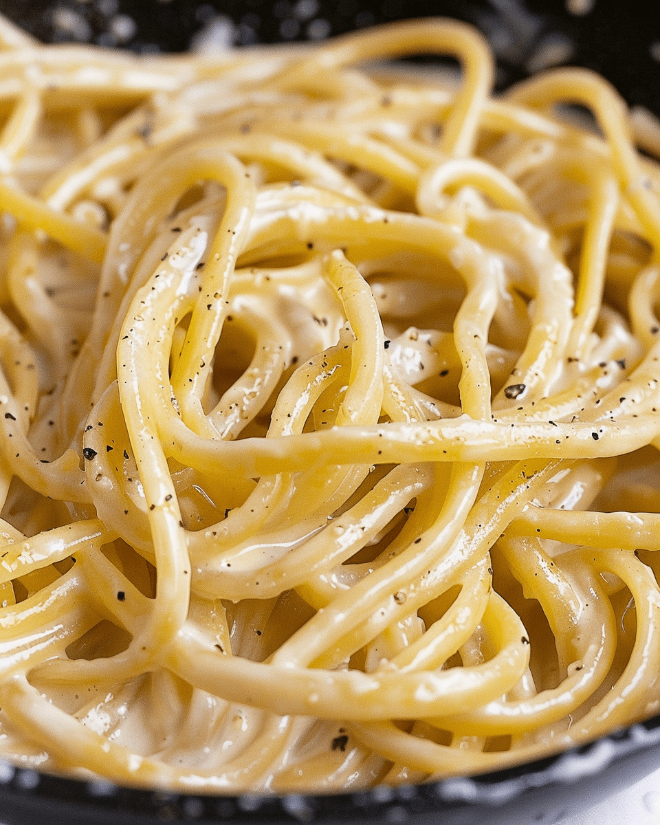 I start by cooking the noodles according to package directions. Once they’re tender, I drain them and leave them in the pot—no rinsing, so the sauce clings better.