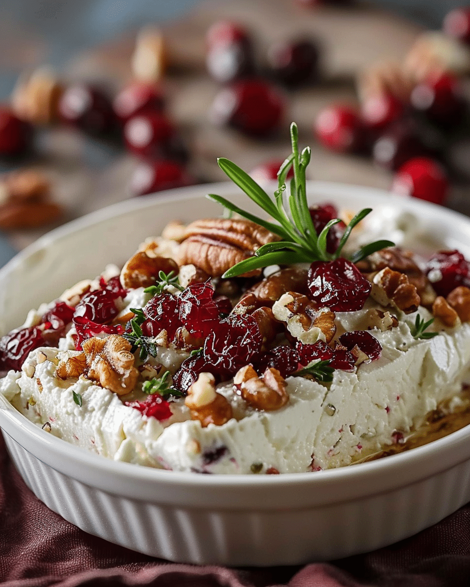 I like swapping in goat cheese for a slightly milder flavor or using dried cherries or pomegranate seeds instead of cranberries. Toasted pecans or pistachios work great in place of walnuts. If I’m going dairy-free, I use a cashew-based cream cheese and vegan feta substitute. For an extra burst of flavor, I sometimes add fresh oregano or basil to the whipped base.